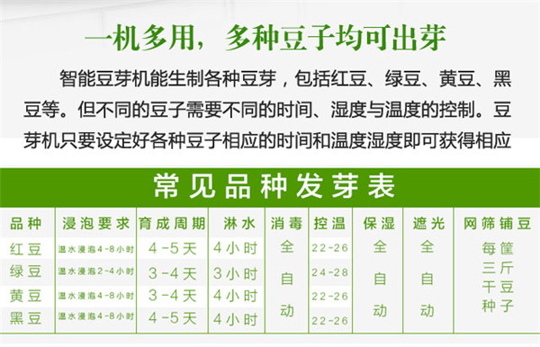 整體真正實(shí)現(xiàn)全自動化,能提供豆芽生長的適宜環(huán)境和條件。